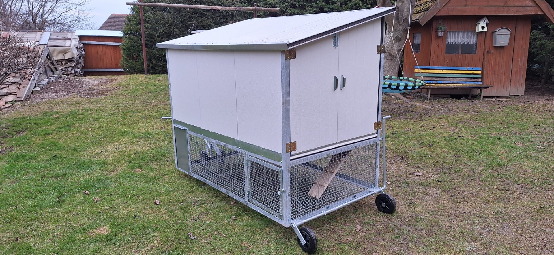 Zateplený Pojízdný Kurník z PUR panelů s vysokou životností, pro 20 slepic